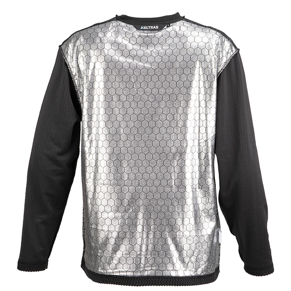 背面のアルミプリントが高い保温性を発揮する防寒ウェア
