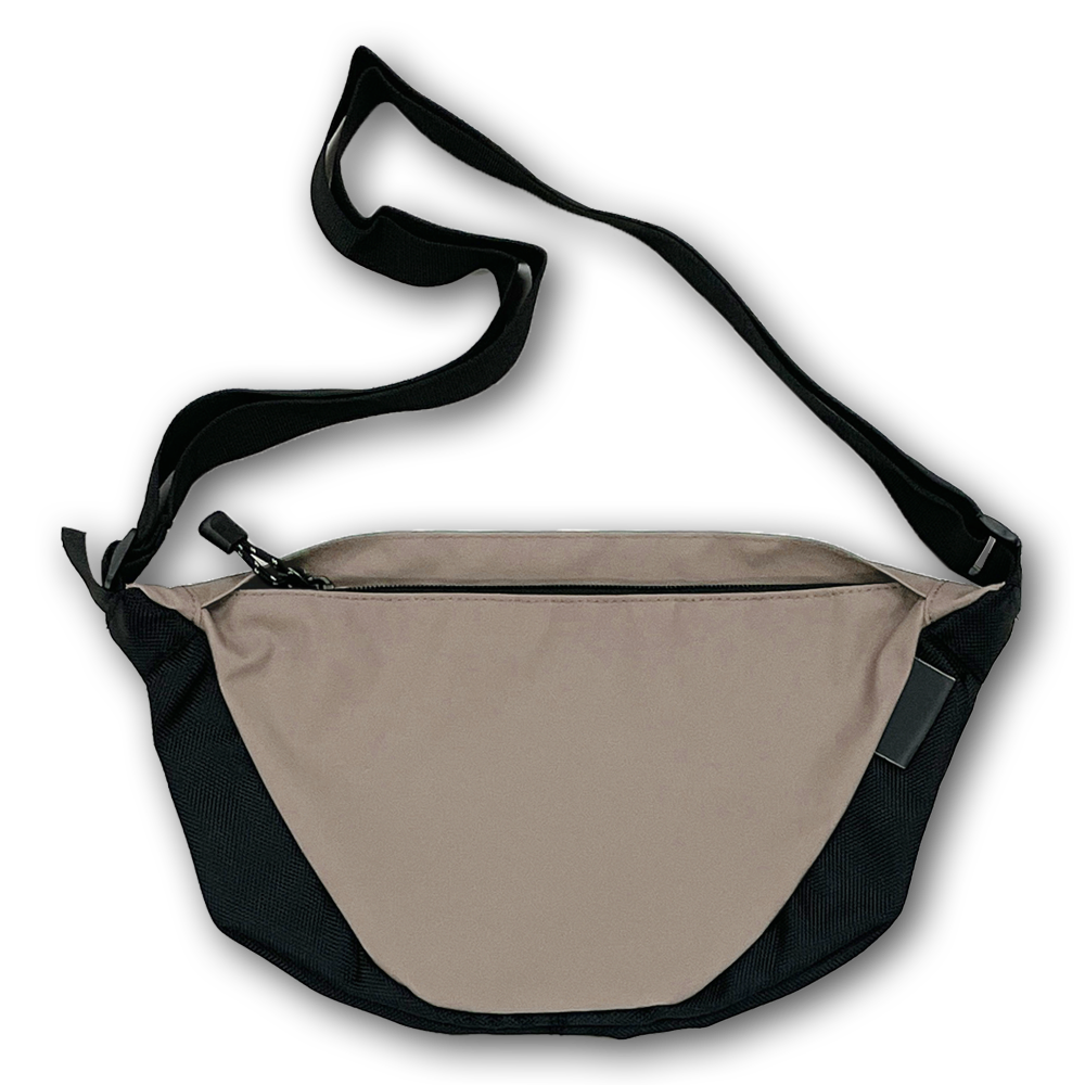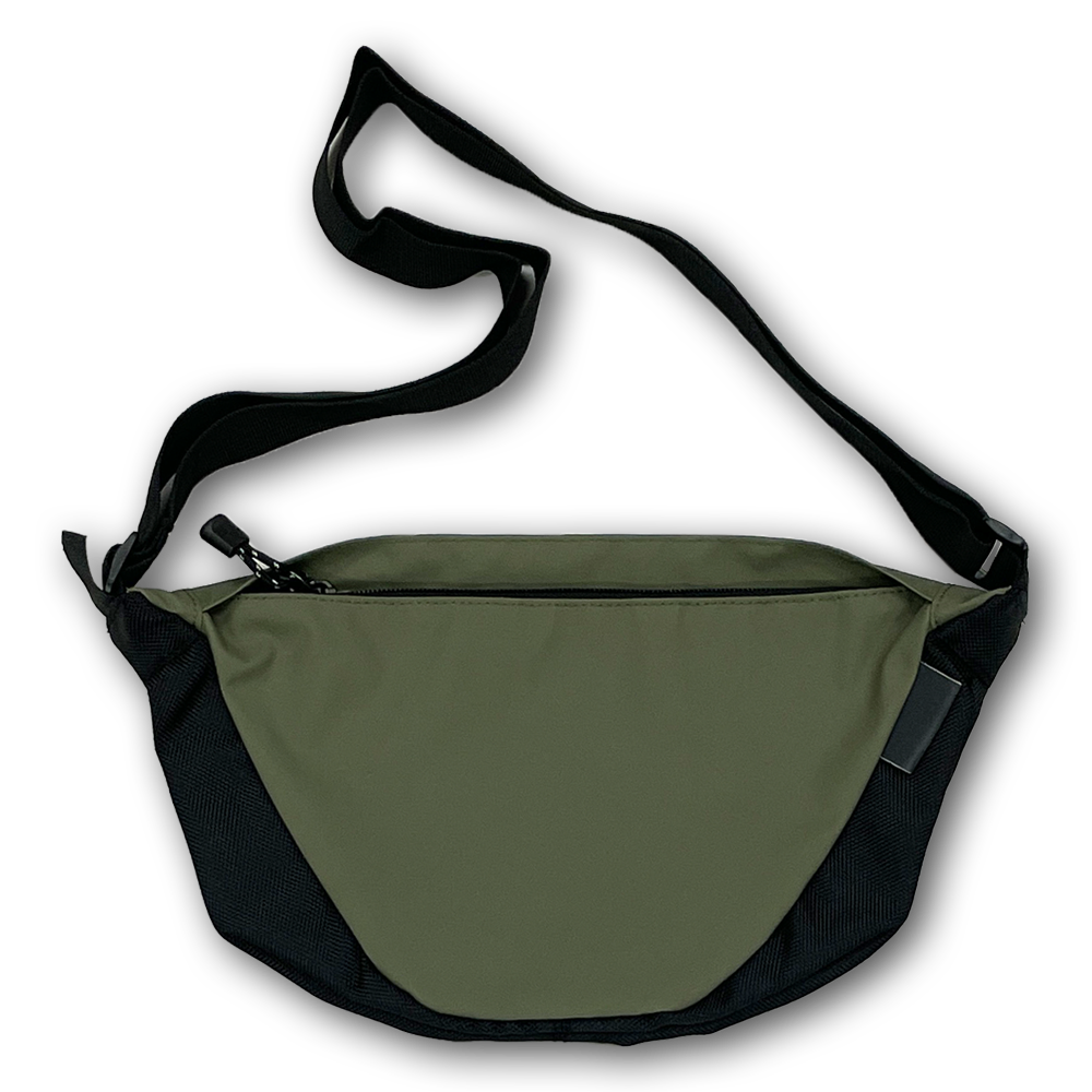 生地に防水コーティングを施した、超軽量のアーチショルダーバッグ。