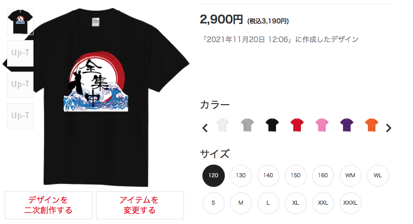 こちらは、「しのぶ」キャラのTシャツデザインなのですがUp-Tではデザインツールが搭載されてるので、より細部デザインが可能なんです。