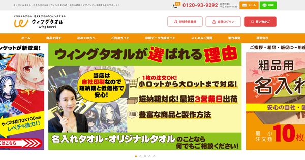 ウィングタオルは、自社で印刷から発送まで一貫して行う、オリジナルタオルの専門店です。