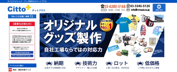 株式会社ビロードが運営するオリジナルプリントサービス「チットプラス」は、タオルをはじめTシャツなどのウェアやバッグ、マグカップ、キーホルダーなどを制作しています。