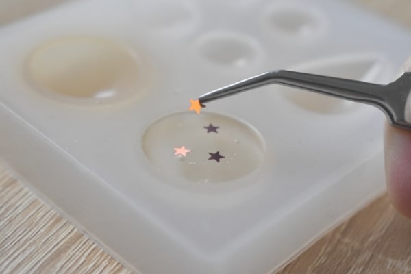 パーツを閉じ込めるだけでなく、UVレジンを着色して型に流し込み固めることで、オリジナルのパーツをつくってみるものオススメです。