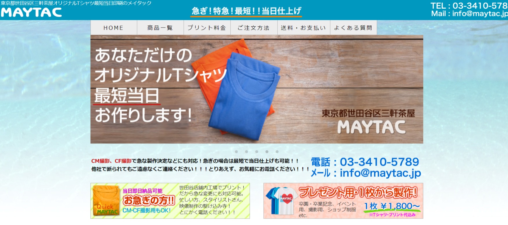 東京都世田谷区三軒茶屋にあるMAYTACは、店舗内工場で印刷するため、急な変更に対応可能です。