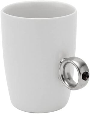 カップの取手に薬指を入れると、まるで本物の指輪をつけているように見えるマグカップです。
