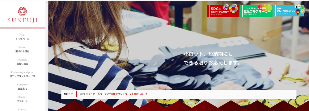1978年創業の三藤株式会社は、エンブレムやワッペンの製造販売、レーザー加工業の他、Tシャツなどへのプリント加工も行っています。