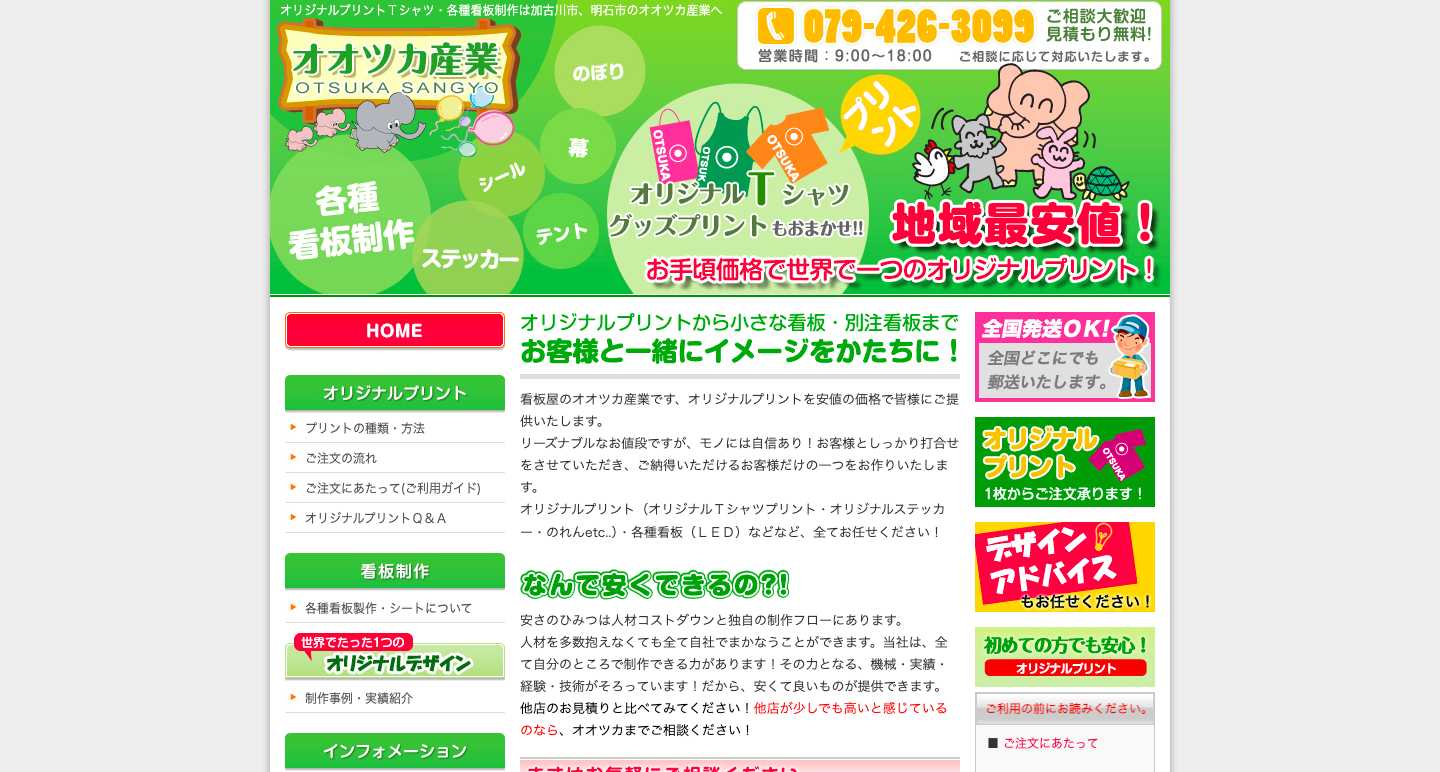 看板屋さんとしてオリジナルTシャツやオリジナルアイテムを制作できるオオツカ産業。