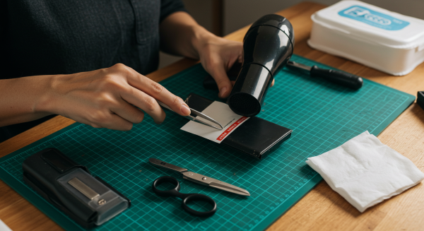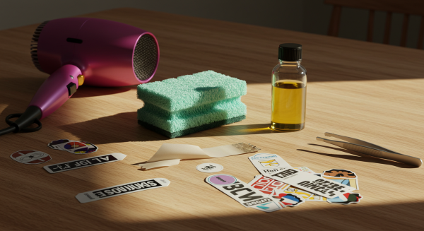 剥がす前にステッカーの状態を確認し、紙製かビニール製かで剥がし方を決めます。角を少し持ち上げ、必要に応じてドライヤーや蒸気を用意しておくと、スムーズに進められます。