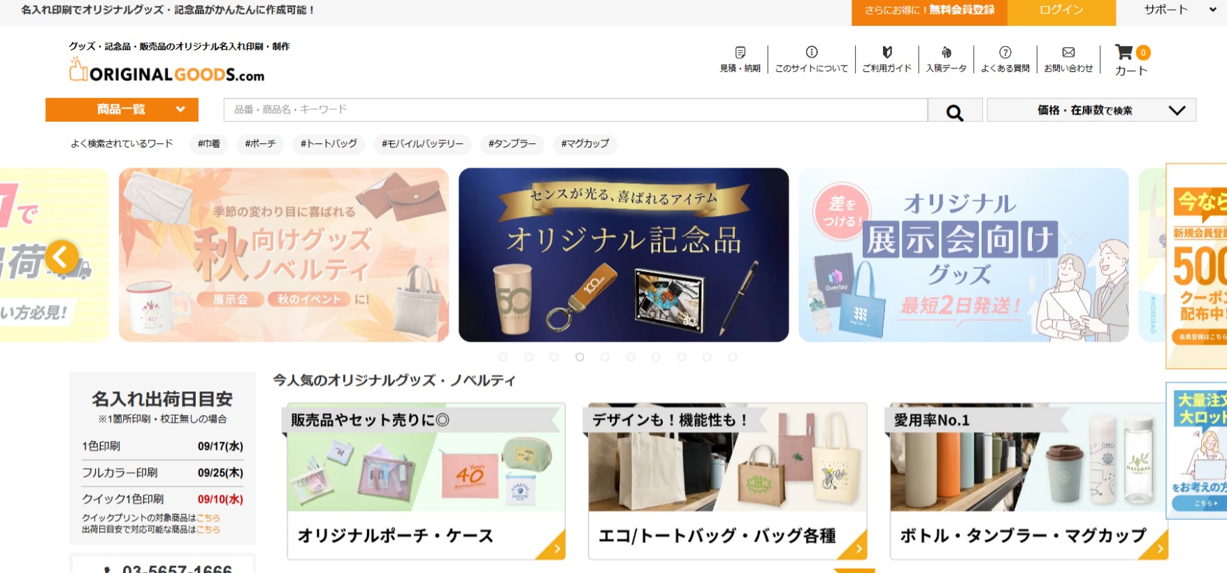 オリジナルグッズドットコムは、ノベルティや記念品、物販用グッズなど幅広いシーンで活用できるECサイトです。