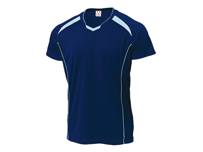 吸汗速乾ポリ100%、ソフトなメッシュ素材で肌触りがよく、バレーボール向けに動きやすさを追求したTシャツです。