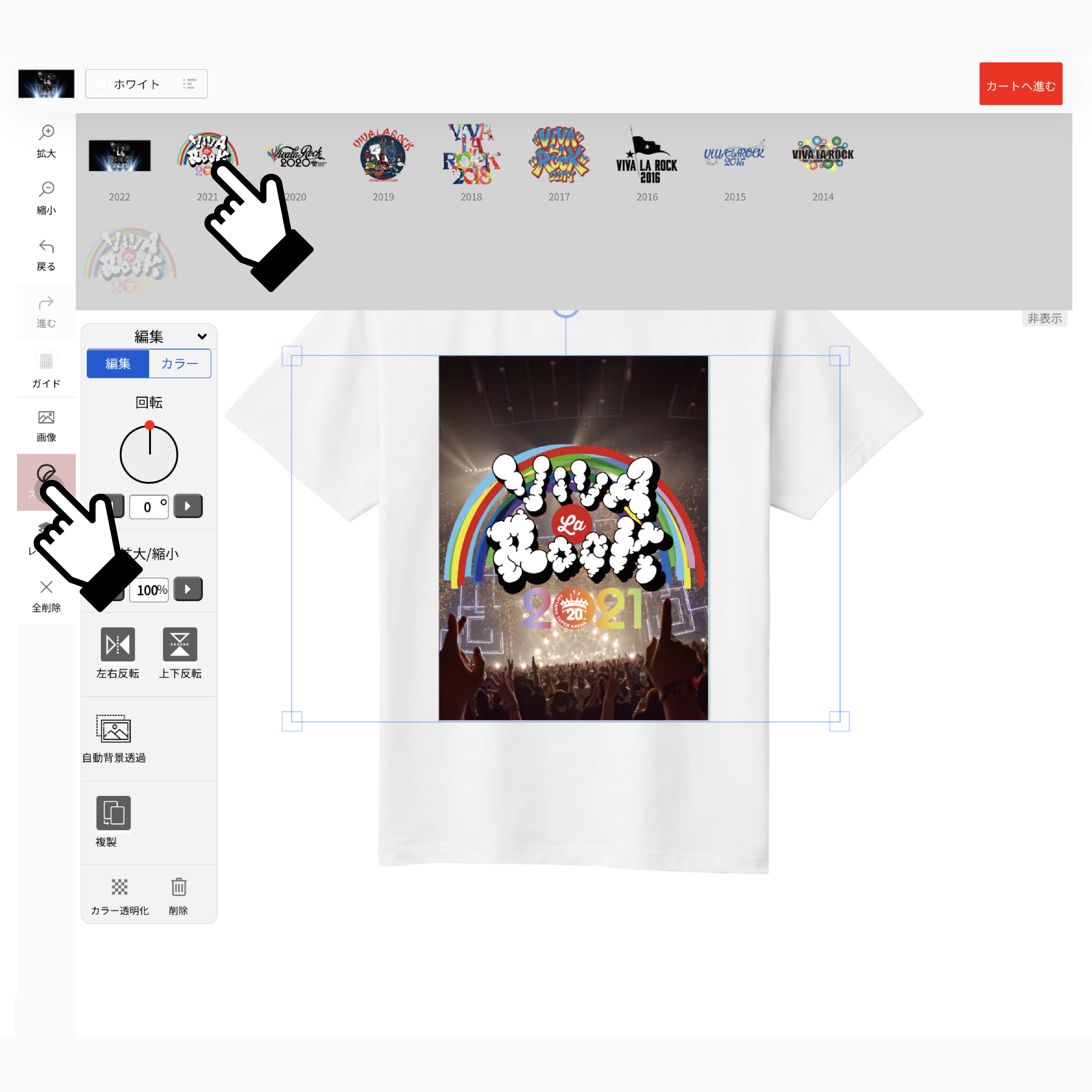 お好きな配置にデザインが完了したら「カートへ進む」をクリック
